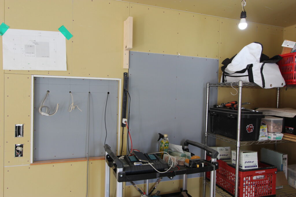 壁面にはリモコンニッチも設けられ、すっきりと美しく仕上がりました。細部まで丁寧に整えられていきます。
