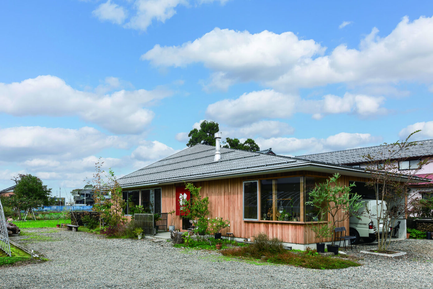 キッチンのある土間からテラスへ、庭へ。土間空間を介して内と外がゆるやかにつながるモ